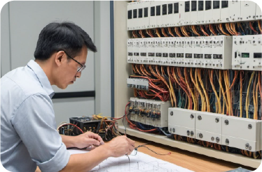 ควบคุมดูแลการติดตั้งระบบไฟฟ้าตามแบบ ที่ออกแบบไว้ ตรวจสอบและทดสอบระบบไฟฟ้าเพื่อความปลอดภัยและประสิทธิภาพ จัดทำเอกสารการติดตั้งและทดสอบ